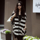 2017春季新款针织衫女开衫中长款条纹蝙蝠衫宽松韩版女装开衫大码