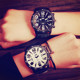 韩国手表女生学生韩版简约个性黑白色时尚潮流欧美休闲石英表潮男