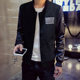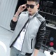 春秋装夹克男 棒球领衣服外套潮开衫PU拼接皮衣褂子外衣青年韩版