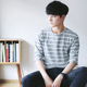 夏季纯棉T恤男士短袖t恤五分袖全棉体恤衫条纹文艺风圆领青少年薄