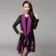 2017新款刺绣加肥加大码女装胖mm春秋装连衣裙中长款长袖两件套潮