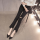 春秋新款高腰弹力修身微喇叭裤百搭显瘦阔腿休闲裤薄款九分裤女潮
