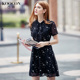 古崇夏季新款女装连衣裙雪纺淑女大摆裙时尚印花修身V领短袖短裙