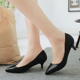 2017新款高跟鞋细跟单鞋工作鞋尖头浅口中跟职业绒面低跟女鞋矮跟