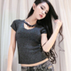 2017夏装新款夜店性感V领镂空挂脖短袖T恤女百搭修身打底针织上衣