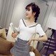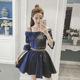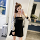 2017夏装新款连衣裙两件套一字领露肩吊带上衣收腰牛仔短裙套装女