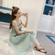 2017夏装新款修身网纱吊带两件套女露肩百褶上衣+中长半身裙套装