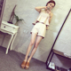 2017夏装新款时尚小香风V领无袖不规则上衣+高腰短裤套装两件套女