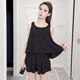 韩版2017夏装新款时尚雪纺无袖不规则上衣+阔腿短裤套装女两件套