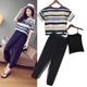2017夏装新款韩版女装三件套大码宽松雪纺衫+休闲九分哈伦裤套装