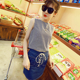 2017夏装新款时尚牛仔套装无袖印花上衣+高腰毛边短裤两件套女潮