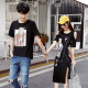 情侣装夏装2017新款韩版短袖T恤套装上衣夏季韩范学生连衣裙女潮