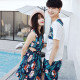 2017夏季新款韩版情侣装夏装短袖T恤连衣裙女沙滩蜜月海滩套装潮