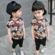 韩版小雨伞特价童装夏款男童卡通短袖T恤短裤休闲中小童两件套装