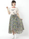 17春季新款文艺小清新碎花系带雪纺开叉连衣裙两件套装