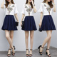 欧洲站夏装2017新款女装绣花修身雪纺衫短裙套装短袖连衣裙两件套