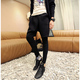 春秋季男士紧身打底裤韩版个性黑色靴裤跑男假两件连体运动裤长裤
