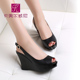 卡美尔威尼超高跟真皮坡跟凉鞋鱼嘴女鞋2016春夏新款防水台高跟鞋
