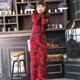欧洲站春装大码纯棉红色迷彩打底长裙开叉修身连帽长款长袖连衣裙