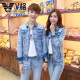 V格春秋季牛仔外套男情侣修身弹力夹克男复古牛仔套装女潮上衣服