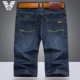 V格牛仔短裤男士夏季薄款宽松五分裤直筒水洗商务休闲马裤大码潮