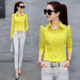 职业衬衣女长袖2017春装新款修身显瘦镶钻钉珠镂空百搭上衣雪纺衫