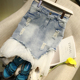 2017夏装新款个性时尚复古钉珠网纱拼接水洗磨破牛仔半身裙气质裙