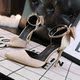 2017新款春季尖头高跟细跟单鞋蝴蝶结浅口高跟鞋OL显瘦工作鞋女鞋