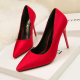 欧美10cm高跟鞋新款细跟浅口超尖头夜店性感女鞋百搭中跟绒面单鞋