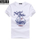 拓路者夏季白色T恤短袖男圆领棉质体恤衫休闲印花半袖宽松大码t桖