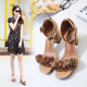 粗跟凉鞋夏女2017新款 韩国简约绑带高跟棕色绒面流苏女鞋罗马鞋