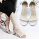 2017新款韩版黑色绒面性感高跟鞋T型带细跟罗马露趾珍珠凉鞋女夏
