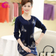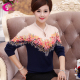 紫吉中老年女装春装长袖印花V领毛衣大码妈妈装中年针织打底衫