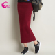 紫吉春秋女装弹力高腰包臀开叉针织半身裙修身毛衣裙子一步裙长裙