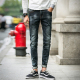 秋冬新款韩版修身小脚裤青年破洞男休闲裤潮男士牛仔裤长裤子学生