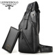 伦威保罗 真皮休闲套装!男士胸包休闲潮流背包 牛皮斜跨单肩包
