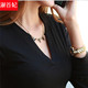 加肥加大码女装200斤胖mm秋装新款弹力显瘦打底衫女V领长袖T恤潮