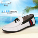 帛梵春季男士豆豆鞋软面皮套脚真皮休闲男鞋轻质驾车鞋白色休闲鞋