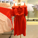 2017夏季新款女装韩版修身一字肩连衣裙露肩性感红色一字领吊带裙