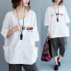 大码女装夏200斤中长款纯棉印花短袖蝙蝠衫胖mm显瘦文艺上衣t恤衫
