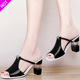 2017新款韩版百搭潮外穿粗跟高跟中跟夏季夏天拖鞋凉拖女鞋子凉鞋