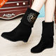 高筒靴长靴长筒靴坡跟2016秋冬季韩版百搭女鞋子短靴中筒靴女靴子