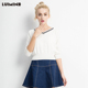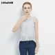 LUIMINE夏装新款女装白色欧根纱上衣大蝴蝶结无袖修身背心雪纺衫
