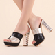 凉拖女 黑色夏新款女鞋高跟防水台凉鞋拼色粗跟一字拖鞋白色厚底