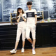 春夏韩版情侣男女休闲套装修身套头卫衣短袖七分裤情侣两件套装潮