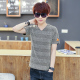 夏季男士短袖t恤条纹圆领纯色半袖体恤青年上衣修身打底衫潮男装