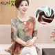 妈妈装针织衫七分袖t恤中老年印花女装40-50岁纱袖上衣T恤春装60