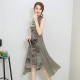 喵棉2017夏装新款女装 中长款欧根纱气质雪纺复古印花连衣裙
