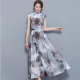 喵棉2017新款时尚修身印花连衣裙气质夏季立领显瘦雪纺长裙大摆裙