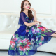 喵棉2017新款修身拖地大摆雪纺印花连衣裙女 V领度假沙滩裙长裙夏